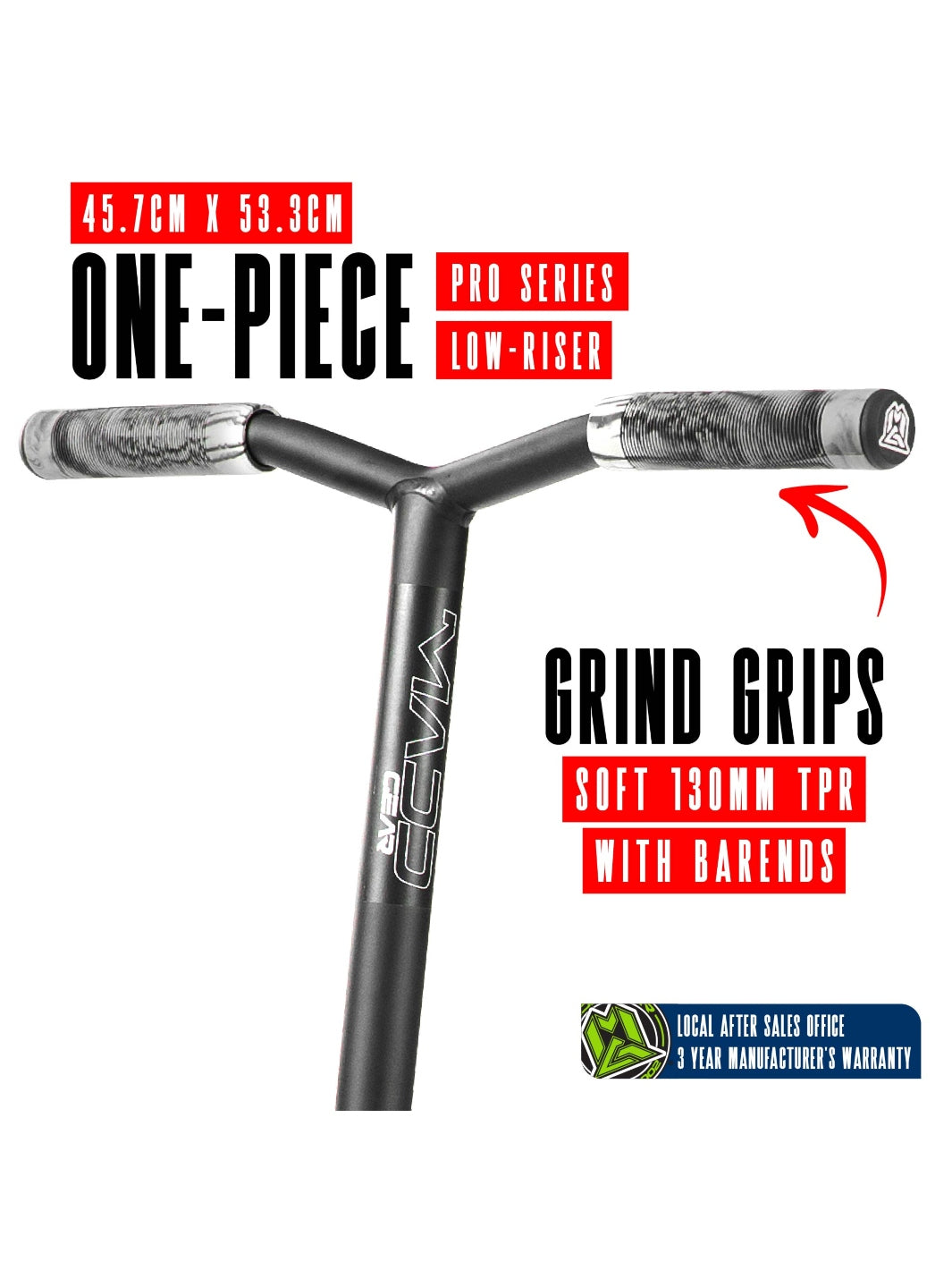 Crafted with a rugged yet lightweight aluminium deck and a tough one-piece steel handlebar, it’s designed to handle hard landings and aggressive riding. Supporting up to 100kgs, it's made to keep up with your biggest moves.