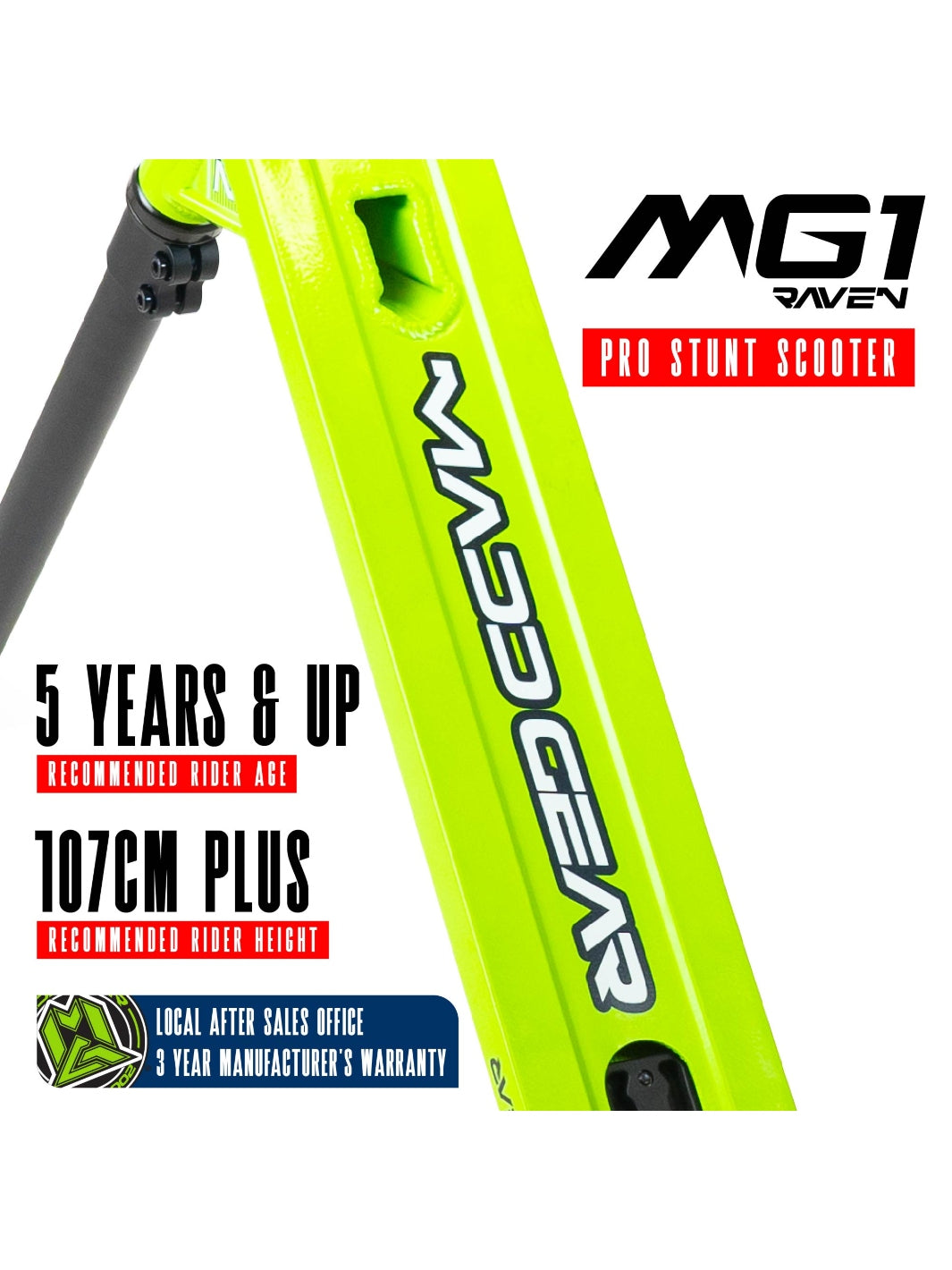 The Madd Gear MG1 Raven Pro Scooter is designed to be the ultimate ride for kids 5 years and up who are ready to shred at their local skatepark. Whether you're learning your first tricks or refining your skills, this scooter is built tough to handle everyday stunt riding.