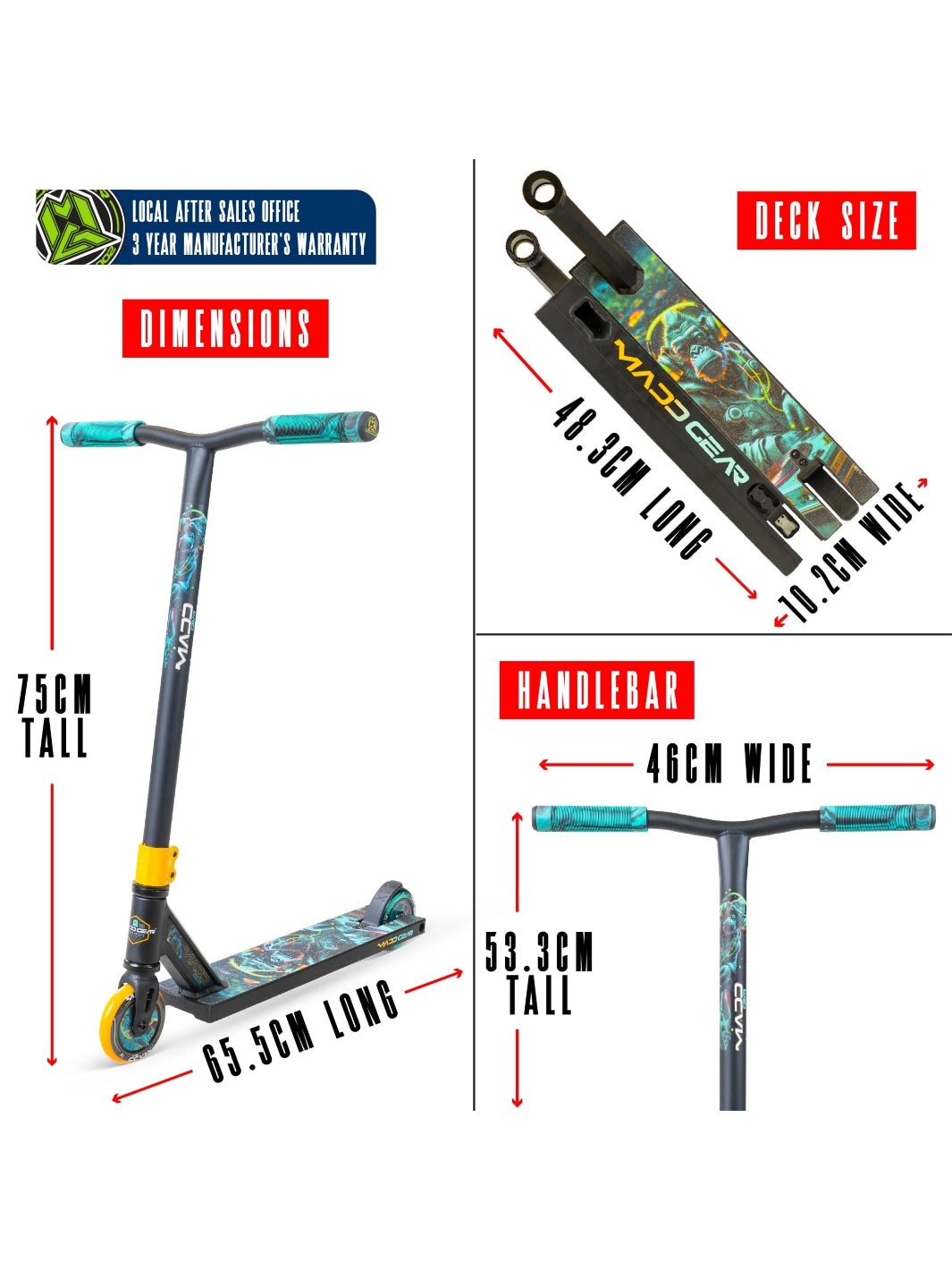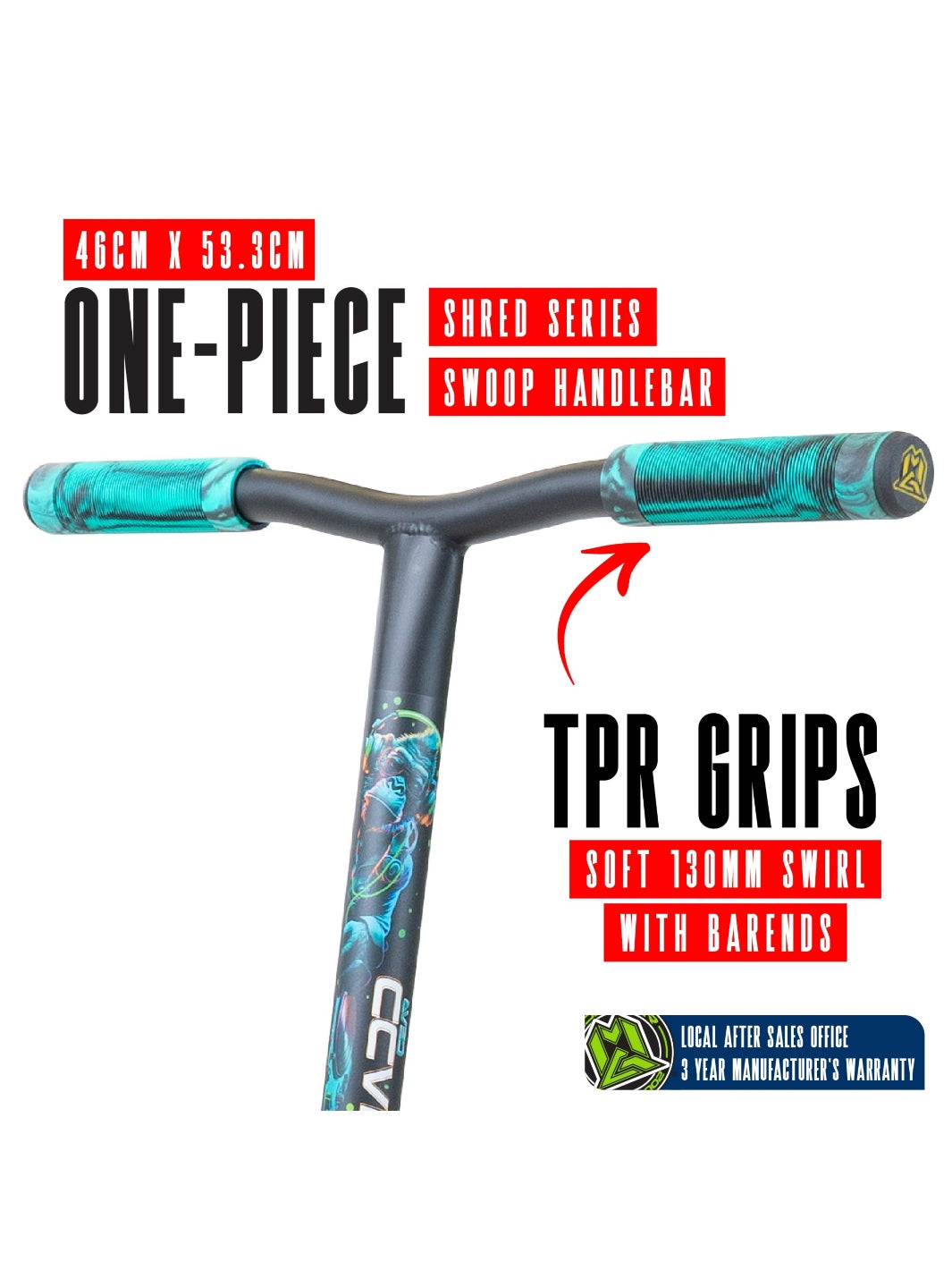 • FINISH: Powder Coated Deck / Full Grip Print / Bottom Deck Graphic