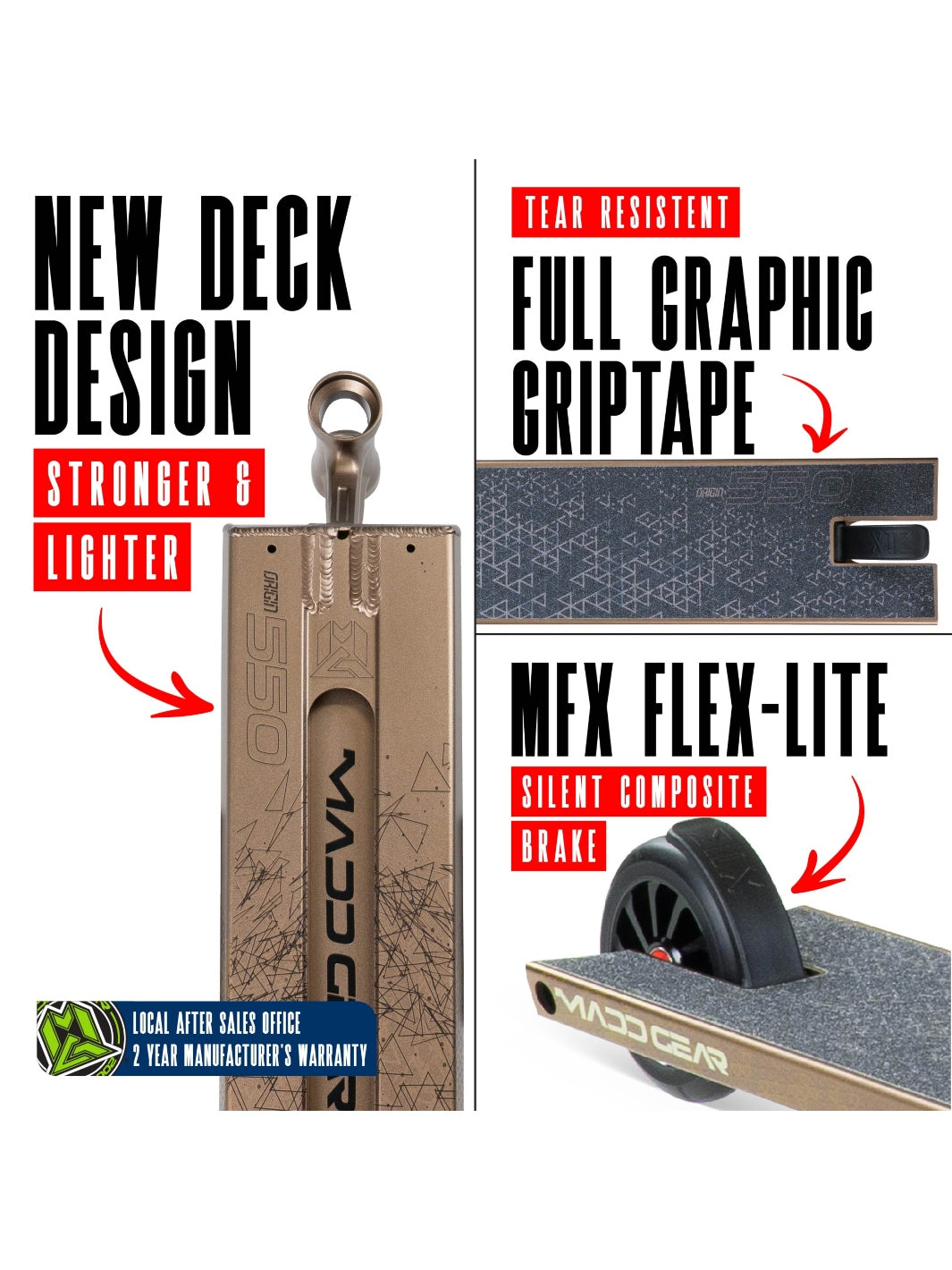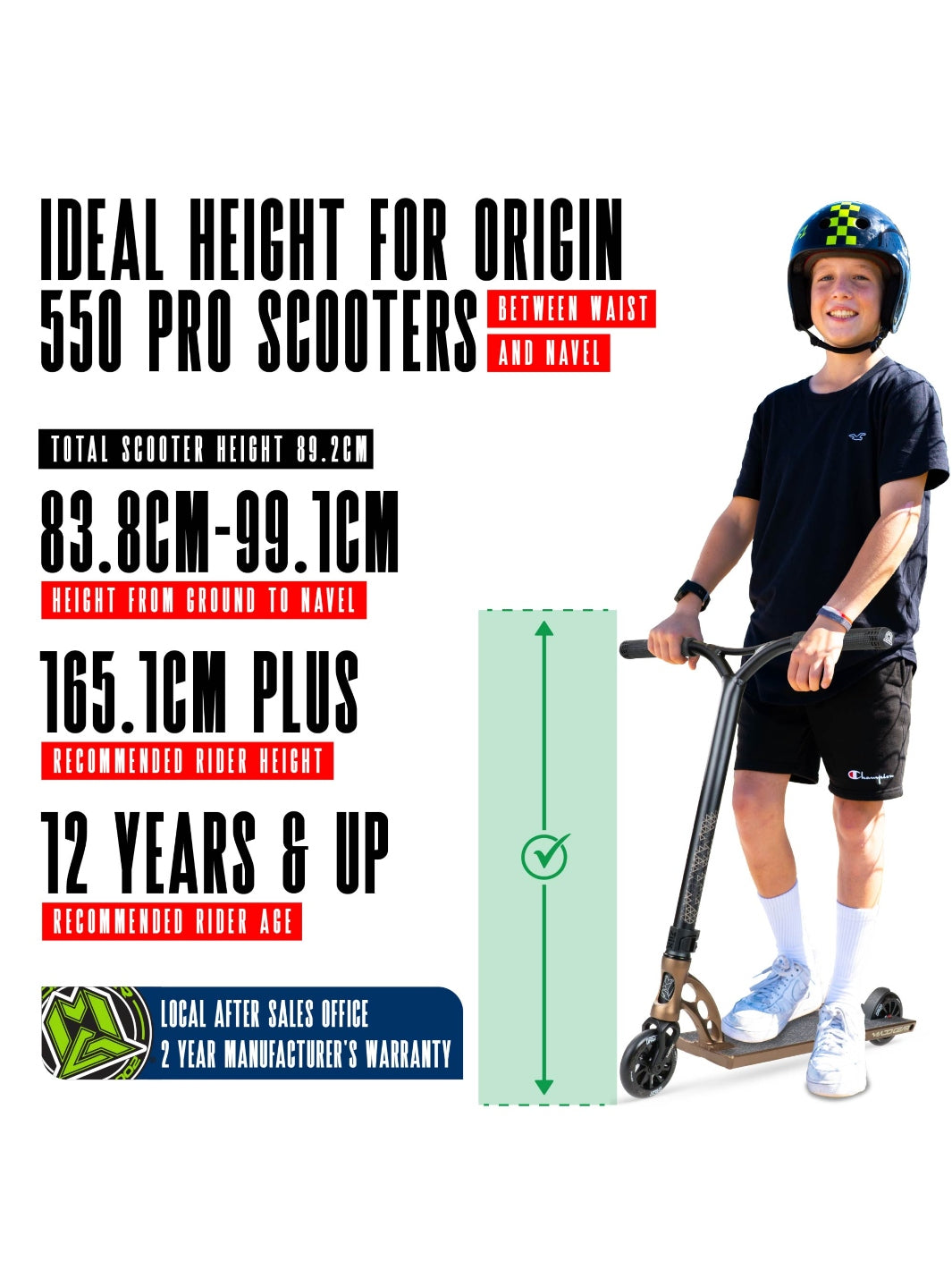 The Origin 550 is a high spec stunt scooter designed for taller riders.