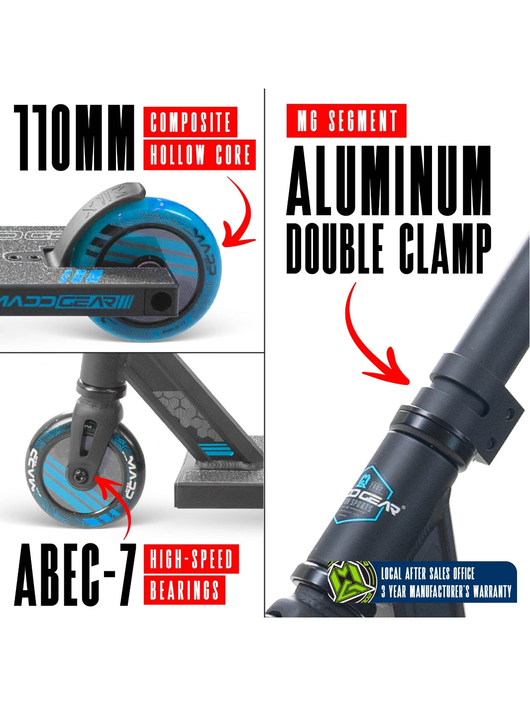 With its high-quality extruded aluminum deck and a strong one-piece steel handlebar, the MG3 Zen Pro Scooter is lightweight yet durable, supporting riders up to 100 kgs. It’s engineered to withstand daily skatepark use, so you can focus on landing tricks instead of worrying about your gear.