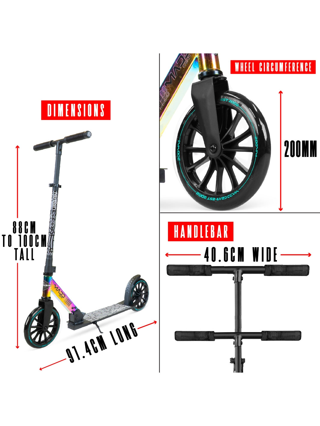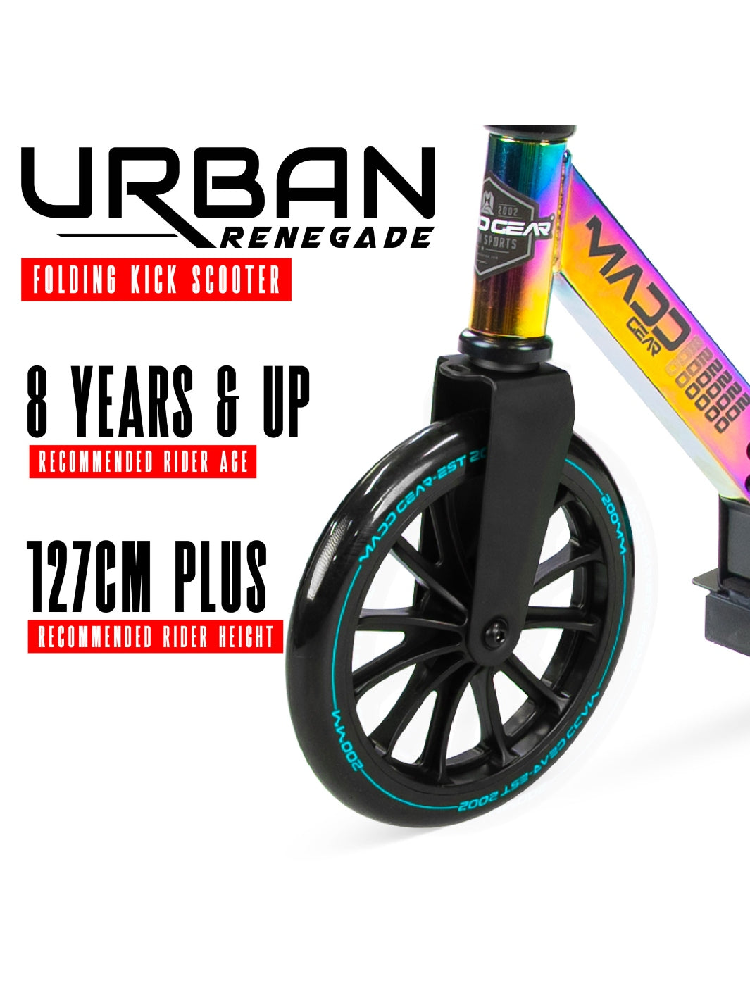 The Madd Gear Urban Renegade Folding Scooter is your go-to choice for stylish city cruising and daily commuting. Built for teens and adults, the Urban Renegade combines a durable carbon steel frame with premium features — including large 200mm wheels, a wide alloy deck, and a vibrant Neo Chrome finish that sets it apart from the crowd.